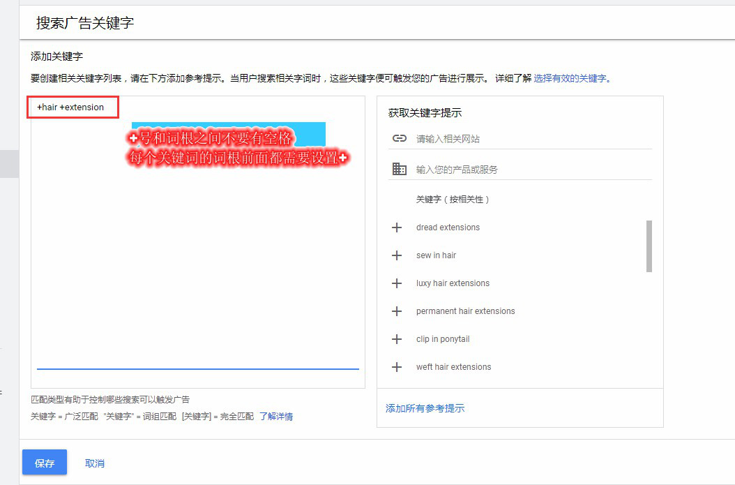 廣泛匹配修飾符:如果你的搜索廣告賬戶(hù)還沒(méi)有使用,那么一定要開(kāi)始嘗試了,因為它能定位包含核心關(guān)鍵字所有元素的搜索。廣告匹配修飾符在后臺是看不到的,但是我們可以自己添加,就是使用一個(gè)英文的加號+,我們也可以把它看做是廣泛匹配的升級版。那么一起來(lái)看看它是怎么設置和使用的吧。